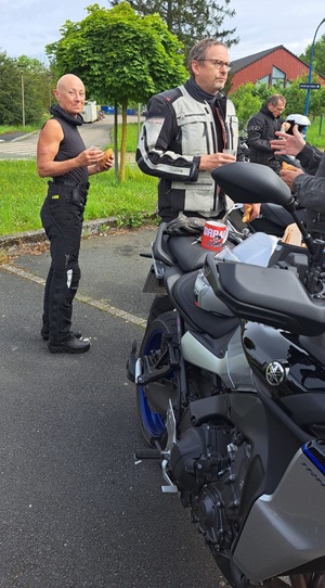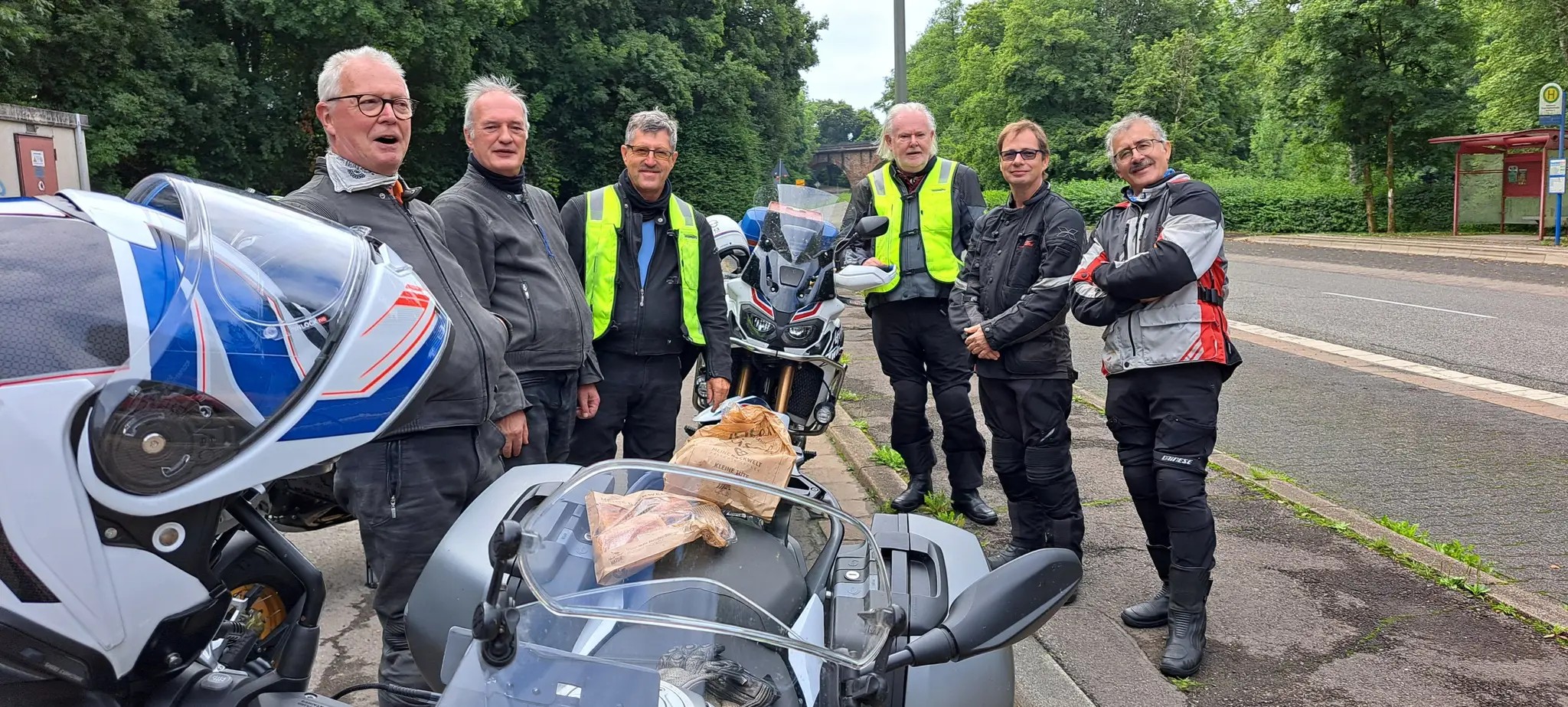 So ist Bernkastel-Kues das Ziel der von Michael geführten Tour am 26.Juli 2025. Es folgen ihm Anne, Jürgen B., Rolf, Frank, Martin und Marwin. Schönstes Wetter und beste Route, deren Verlauf zu Beginn durchs westliche Saarland führt auf Strecken, die tatsächlich vielen unbekannt waren. Du weißt selbst, wie es ist, wenn es glatt und zügig läuft: Da gibt es außer von freiem Fahrgefühl nicht viel zu berichten. Kaffeepause comme toujours avec des croissants de France. Merci Michael!