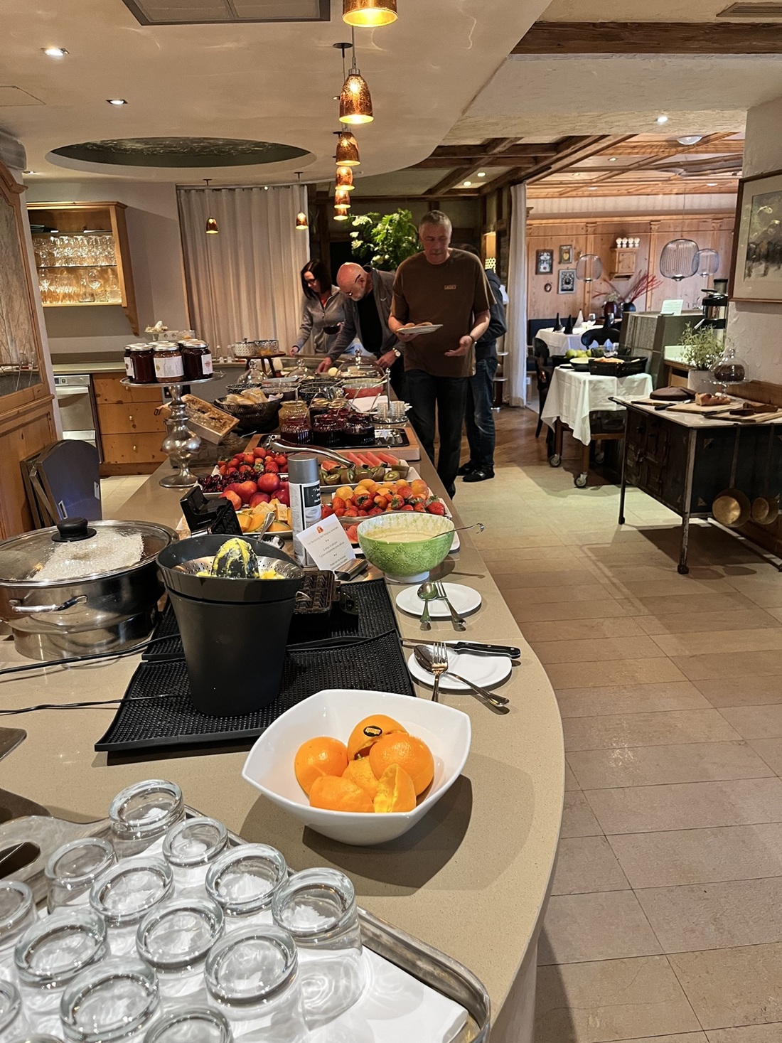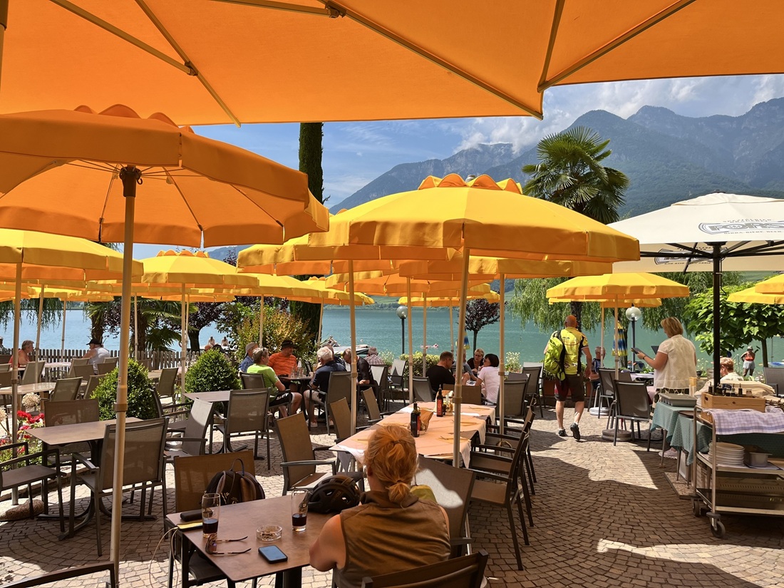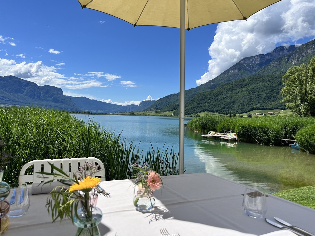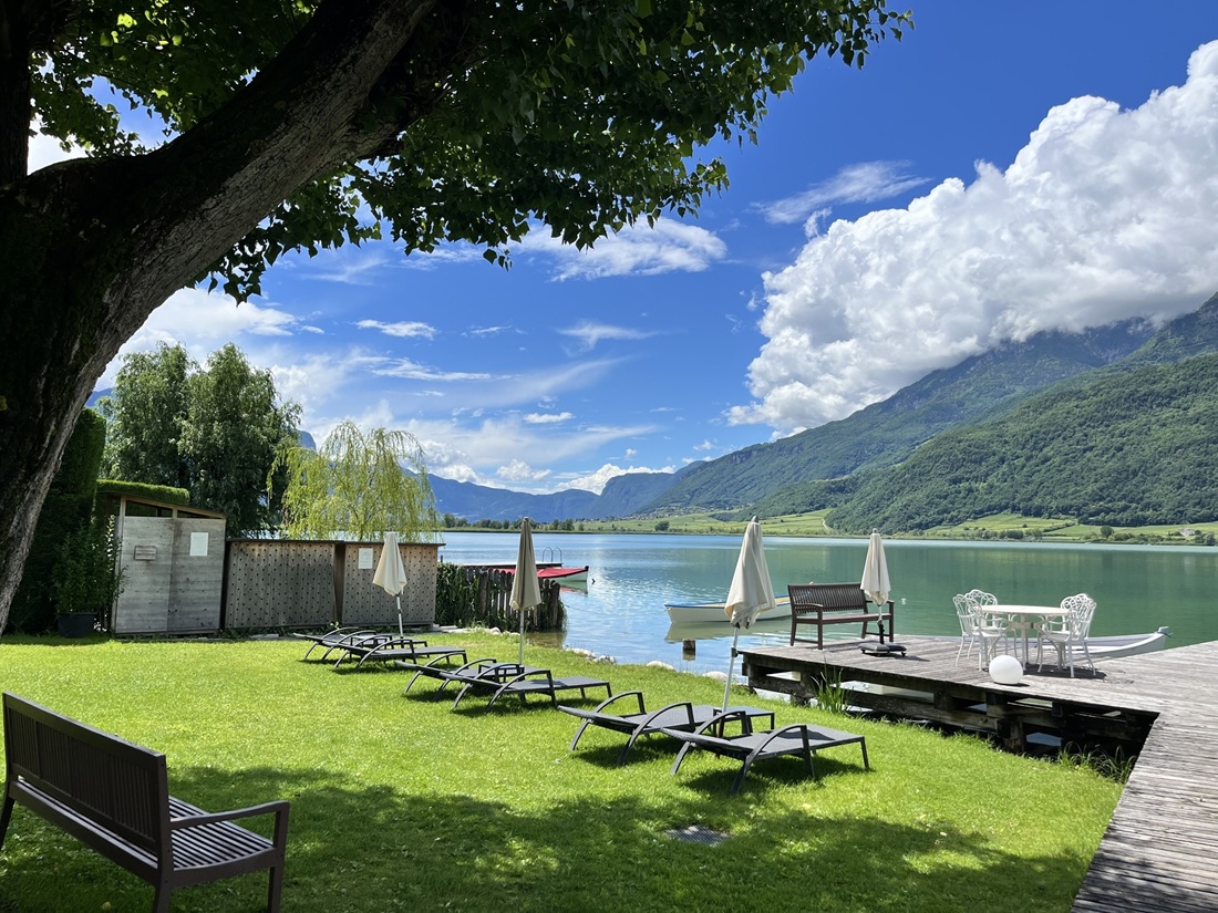 12 Grad bei Abfahrt. Dirk führt Richtung Süden Gampenpass, Mendelpass. Stefan hadert mit der italienischen Zapfsäule und nimmt eine Benzindusche. Kalterer See. Kaffeepause bei schönstem Sonnenschein direkt am See. Danach Lavaca Pass und bei 30 Grad durch Bozen wieder nach Hause. Willkommene 3/4 Pension mit leckeren Kleinigkeiten herzhaft oder süß. Das Gewitter und ordentlicher Regen ficht uns nicht mehr an! Wir sind in der Sauna und dann beim Galadinner