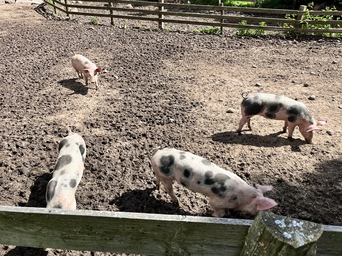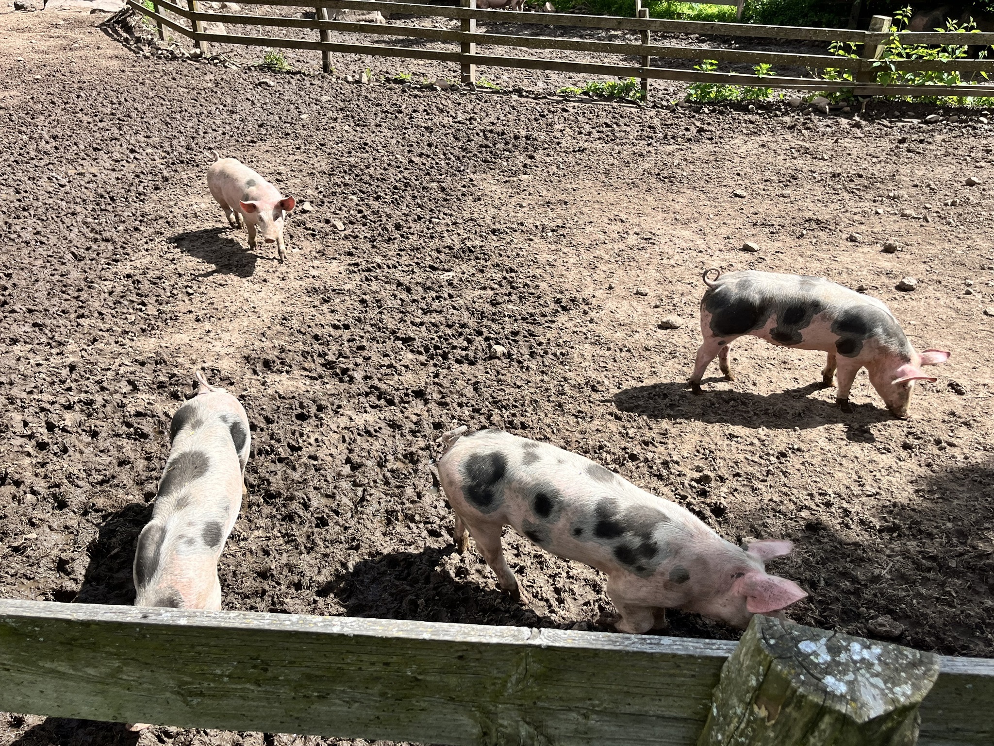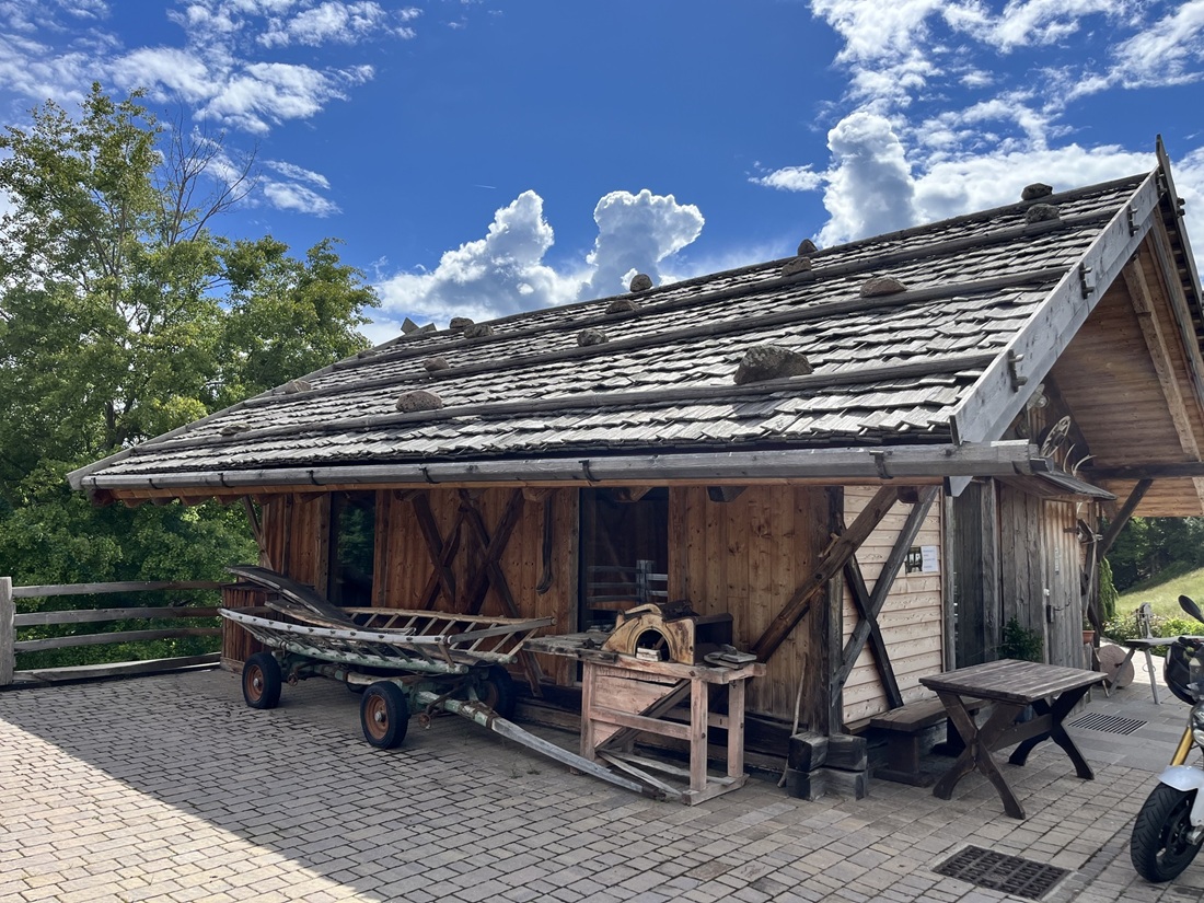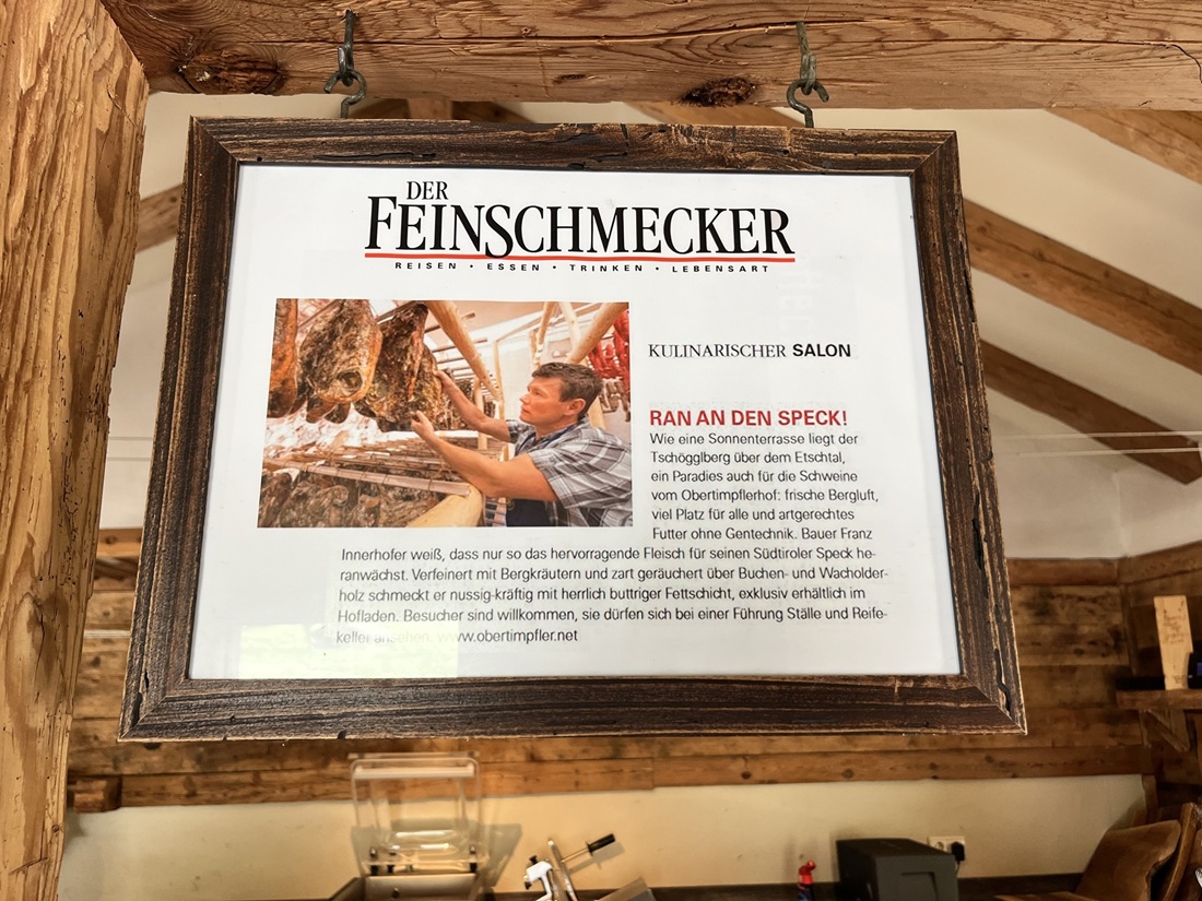 Jürgen führt uns über St. Leonhard und den Jaufenpass nach Sterzing. Weiter dann das Penserjoch und das Sarntal. Von Bozen über spektakuläre Straßen zur Albergo Plattner auf einen Kaffee mit sensationeller Aussicht auf Bozen. Dann erwischt uns doch noch kalter Regen. Jürgen, Dirk und ich besuchen den Obertimpflerhof bei Vöran um Speck und Wurst von den Schweinen zu kaufen, die so artgerecht gehalten werden, dass sie sogar auf südtirolerisch grunzen!