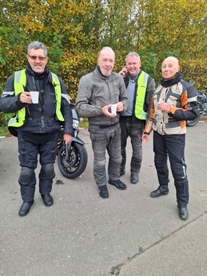 Helmuts Wengelsbach-Tour am 27.September fiel leider mangels Mitfahrern. Es fügte sich somit günstig, dass Dirk seine Tour für Oktober absagen musste und Helmut hilfreich die Zügel als Tourguide übernahm und das gleich sehr heftig: Start am Boulevard bei ungefähr einstelliger Temperatur, aber Helmut war am Güdinger Kreisel mit Blitzstart fast schon im dreistelligen Bereich! Im Gespann mit ihm: Anne N., Anne W., Martin und Marwin. Kaffeepause war nicht, da Helmuts Navi „La Petite Pierre“ nicht auf dem Schirm hatte oder haben wollte und die Alternative, das Gasthaus am Musée Lalique noch geschlossen war. Also durchgedüst bis Wengelsbach zu den frisch auf dem Teller gelandeten „Mistkratzerln“.