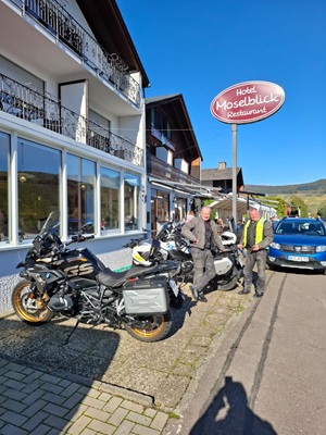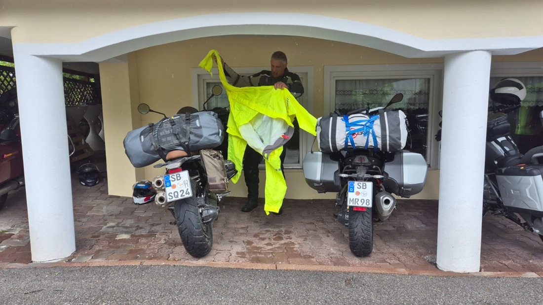 Zum ersten Mal überhaupt starten wir eine Tour im Regen: los geht´s am Donnerstag, den 30.05.2024 in St Ingbert. 440 km nach Zöblen im Tannheimer Tal dann aber doch trockener als befürchtet. Allerdings: die letzten 18 km im eisigen Starkregen der seine Spuren hinterlässt. Das Hotel Alpenrose mit junger und schlagfertiger Wirtin.