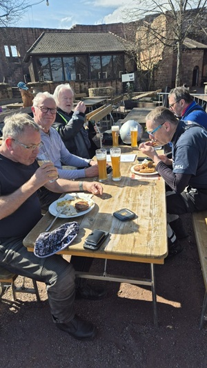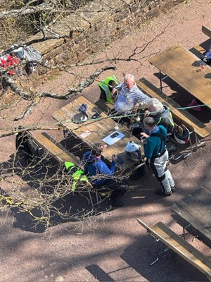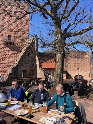 Bei besten Bedingungen mit Sonnenschein und 20 Grad machten sich Berthold, Helmut, Jürgen B, Marwin und Thomas unter der Führung von Michael auf nach Klingenmünster zur dortigen Burgruine Landeck.