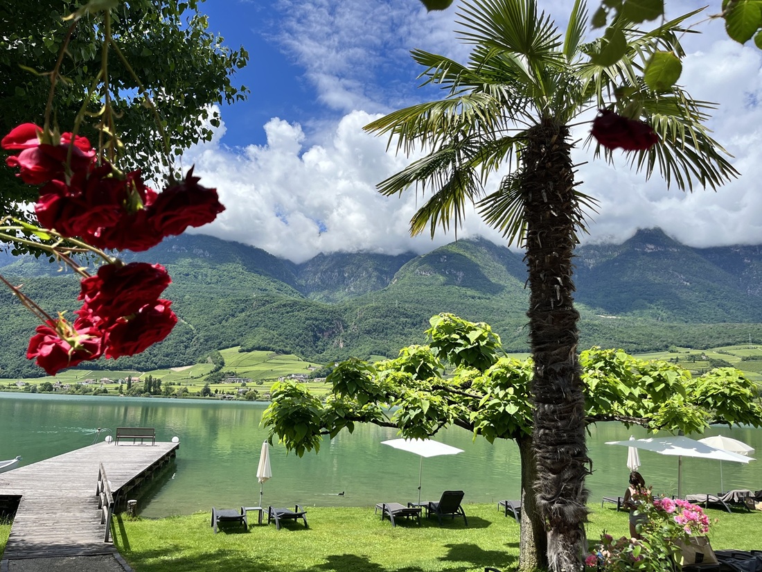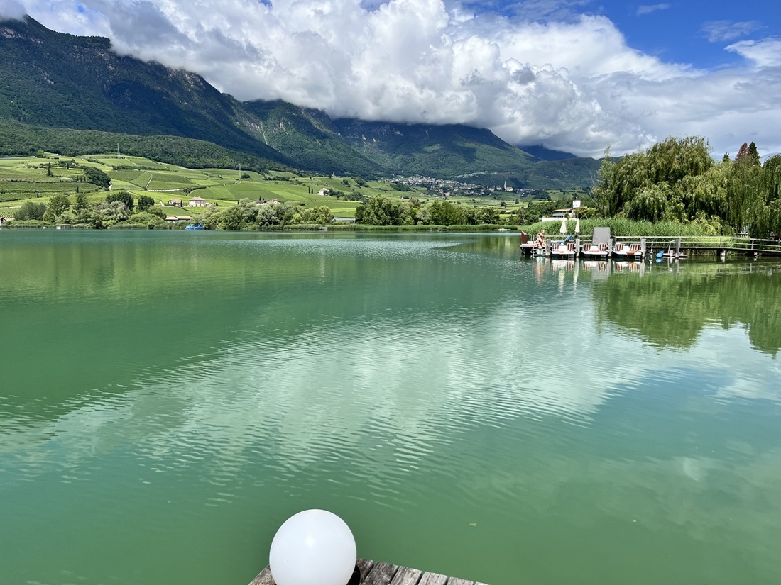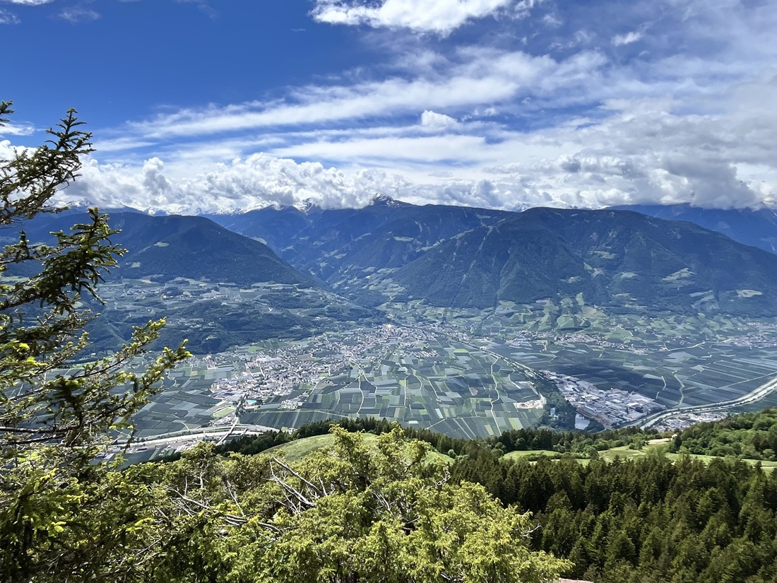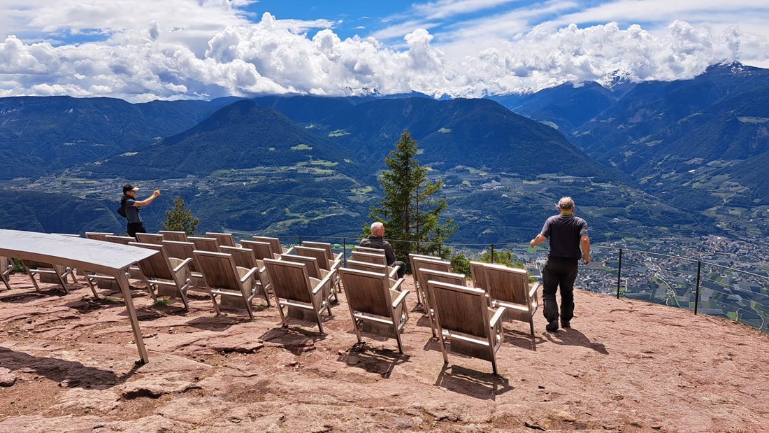 Meine Tour ebenfalls Richtung Süden über Lana, das Ultental, St. Pankraz, Laurein, Fondo und Menelpass zum Kalterer See. Auch hier wunderschöne Hotelterasse direkt am See mit mediteranem Ambiente. Zurück dann lassen wir Bozen rechts liegen und fahren schon bei Terlan auf die Höhe, um dann über Möten und Vöran das Knottnkino zu besuchen. Eine Kunstinstallation auf einem Felsen in 1465m Höhe mit atemberaubender Fernsicht auf unzählige Gipfel sowie in das Etschtal. Ein paar Tropfen, ansonsten trocken und überwiegend sonnig.