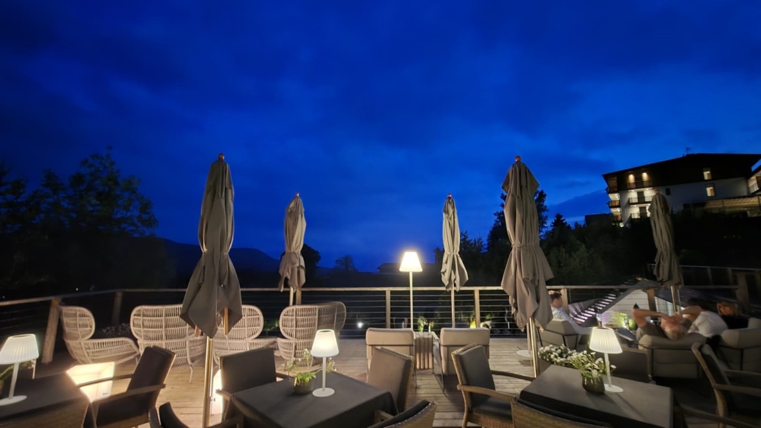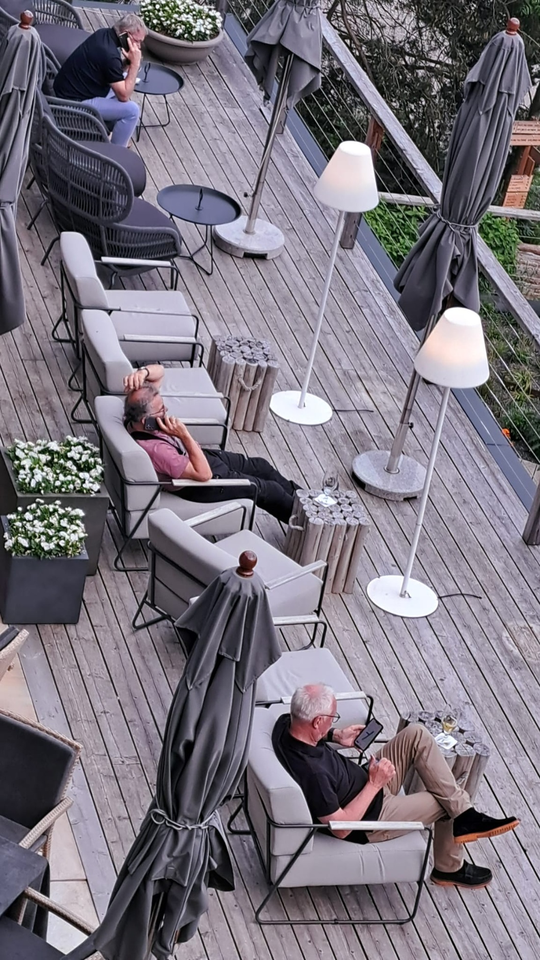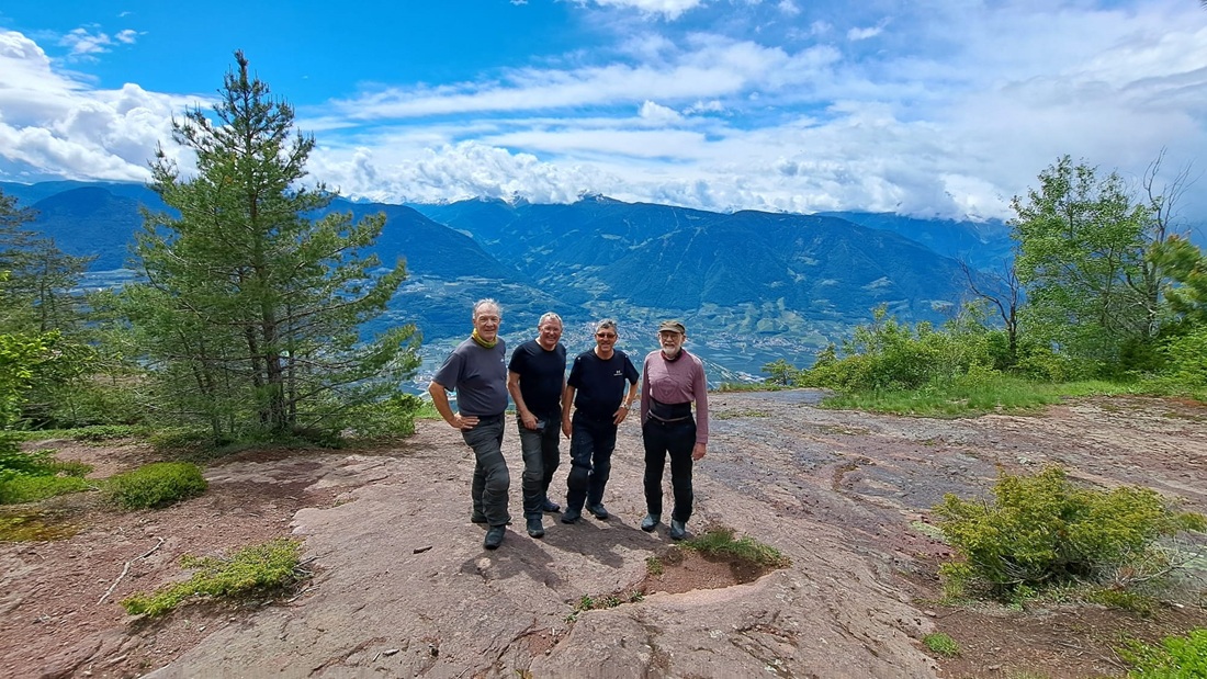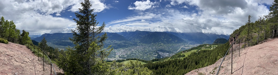 Meine Tour ebenfalls Richtung Süden über Lana, das Ultental, St. Pankraz, Laurein, Fondo und Menelpass zum Kalterer See. Auch hier wunderschöne Hotelterasse direkt am See mit mediteranem Ambiente. Zurück dann lassen wir Bozen rechts liegen und fahren schon bei Terlan auf die Höhe, um dann über Möten und Vöran das Knottnkino zu besuchen. Eine Kunstinstallation auf einem Felsen in 1465m Höhe mit atemberaubender Fernsicht auf unzählige Gipfel sowie in das Etschtal. Ein paar Tropfen, ansonsten trocken und überwiegend sonnig.