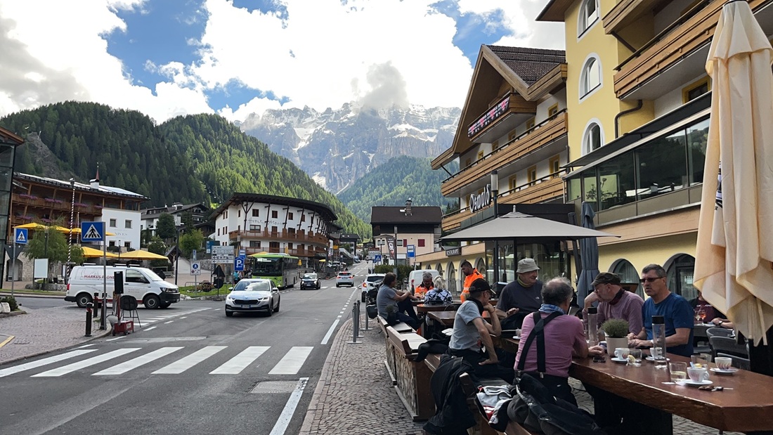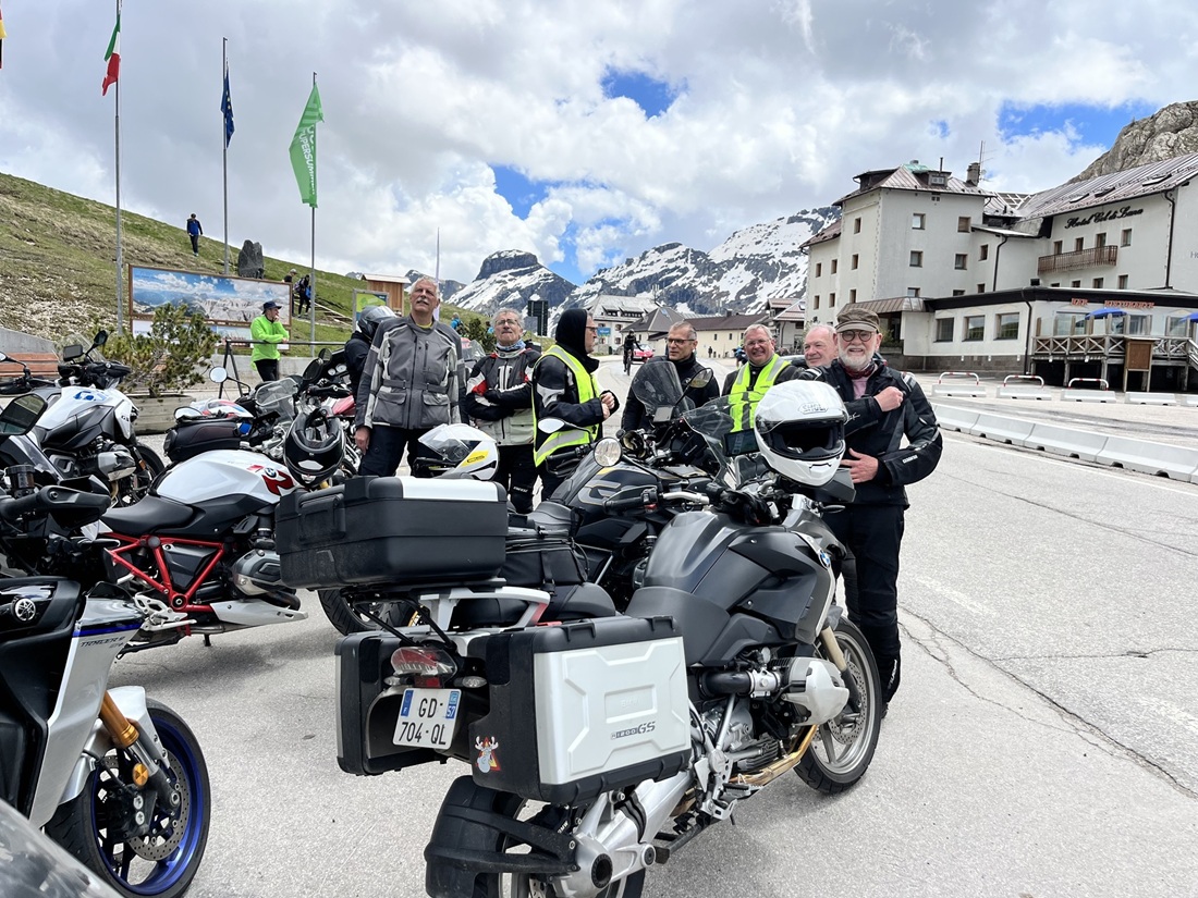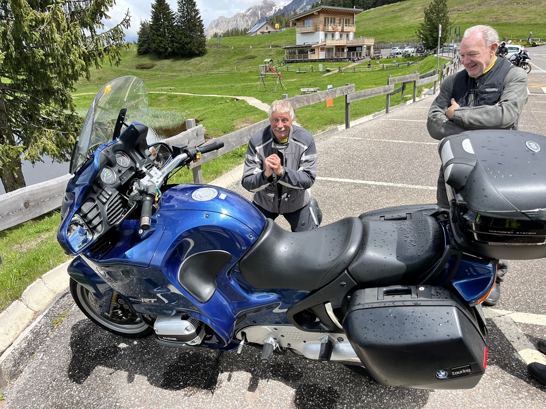 Helmut fährt Richtung Osten, zunächst Bozen, dann die Erdpyramiden Lengmoos nach Wolkenstein zum Kaffee. Danach Sellajoch und Pordoipass. Von dort nach Arabba. Auf der Abfahrt wird Bern von einem Bus touchiert. Bis auf Kratzer an der Harley, an seiner Hand und am Bus ist Gott sei Dank nichts passiert. Dann über Falzarego und Valparola Pass. Dort unglaubliches beeindruckendes Panorama. Danach Grödner Joch zur Vollendung der Sella Runde. Über Wolkenstein zurück nach Bozen und ein Stück Schnellstraße heim nach Hafling. Das war ein harter Tag mit fast 300 km!