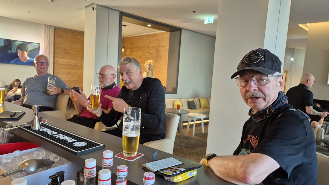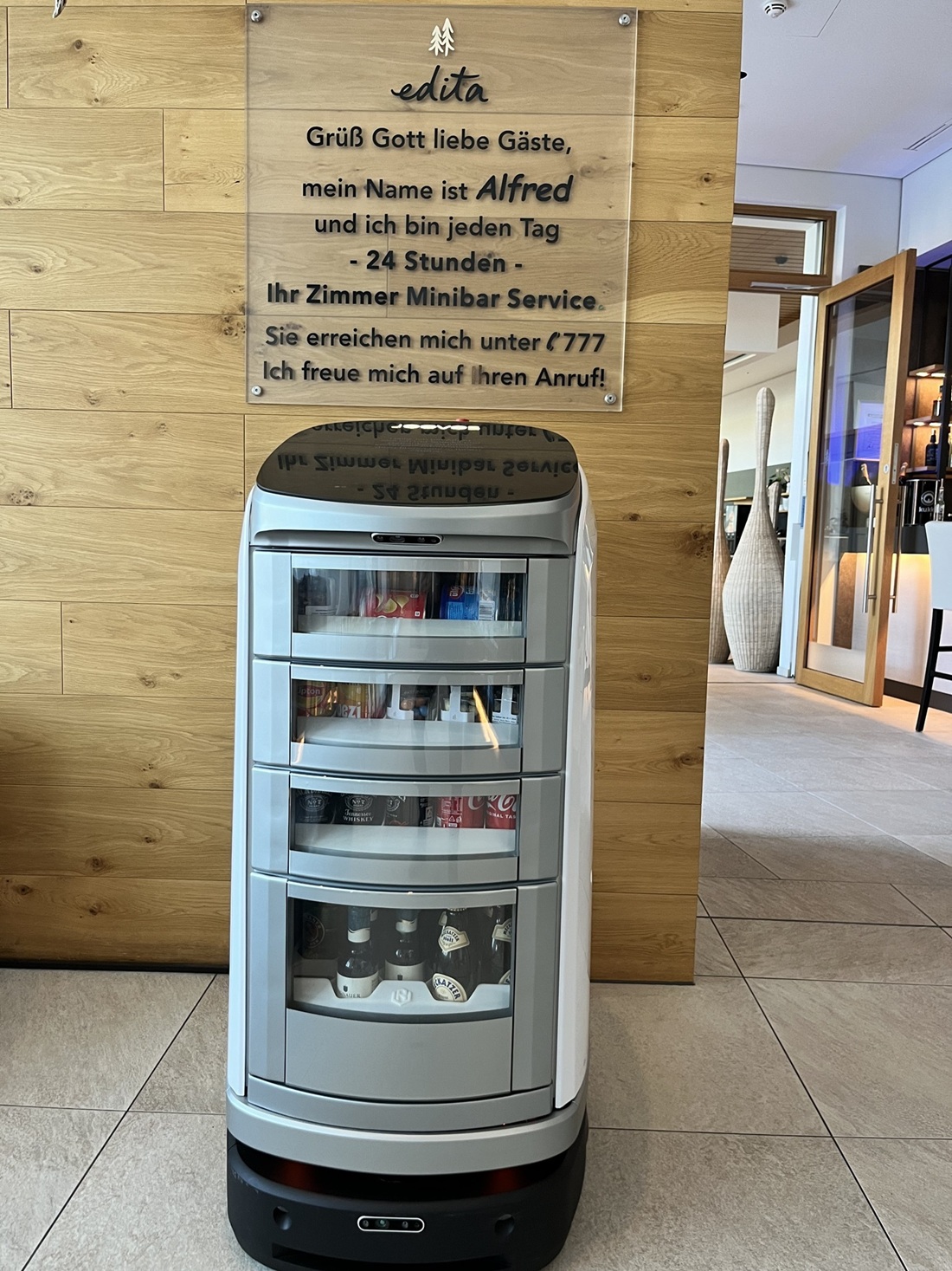 Auf nach Scheidegg im Allgäu. Torsten führt uns und kämpft mit dem Eigenleben des Navis, das uns leider auf einen Umweg und auch noch durch Bregenz führt. Helmut reißt der Geduldsfaden und prescht dann voran. Auch hier ein 4 Sterne Haus. Das Hotel Edita hat einen Mini Bar Roboter!!!
