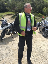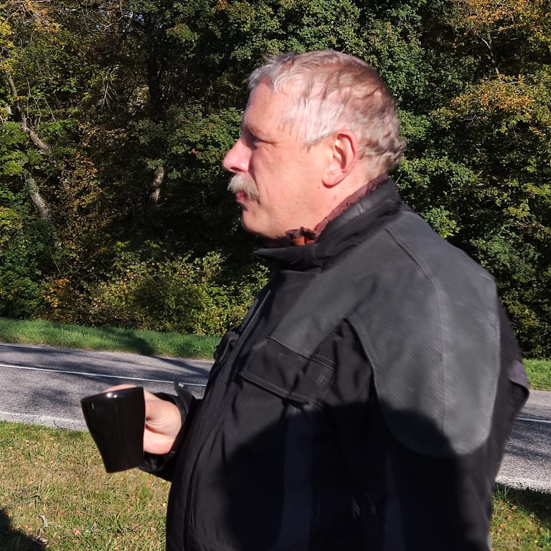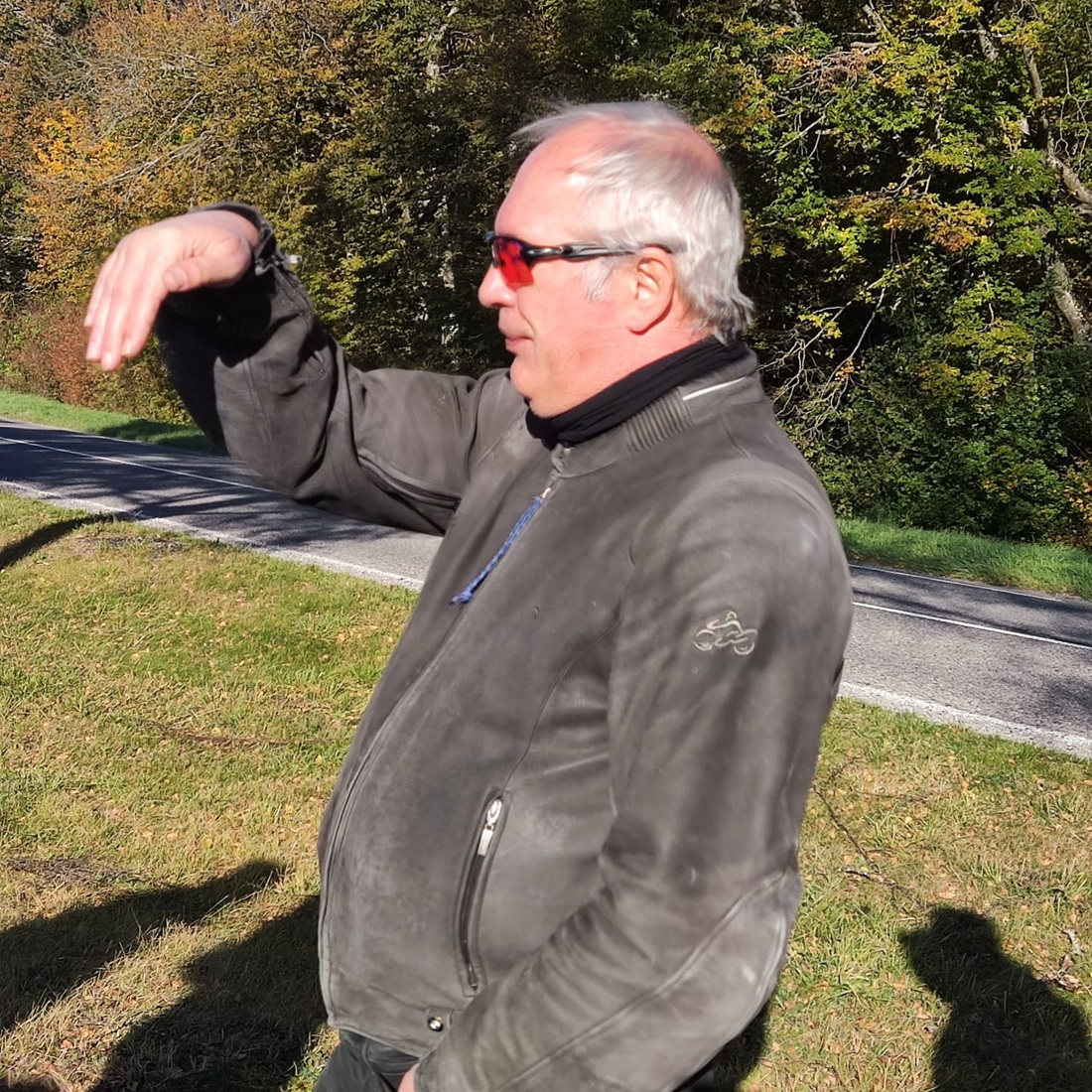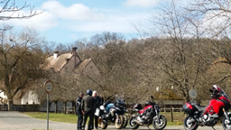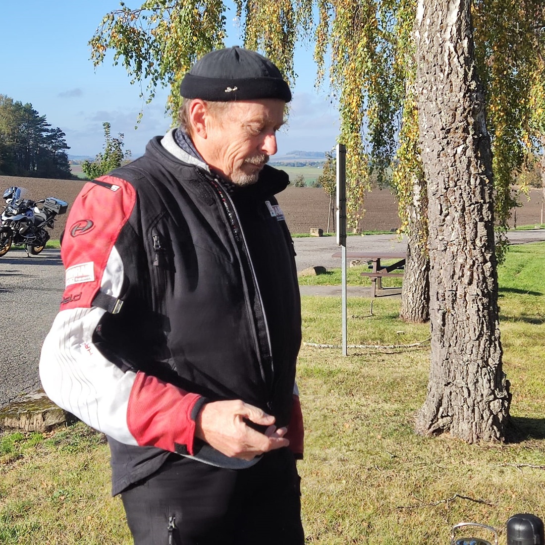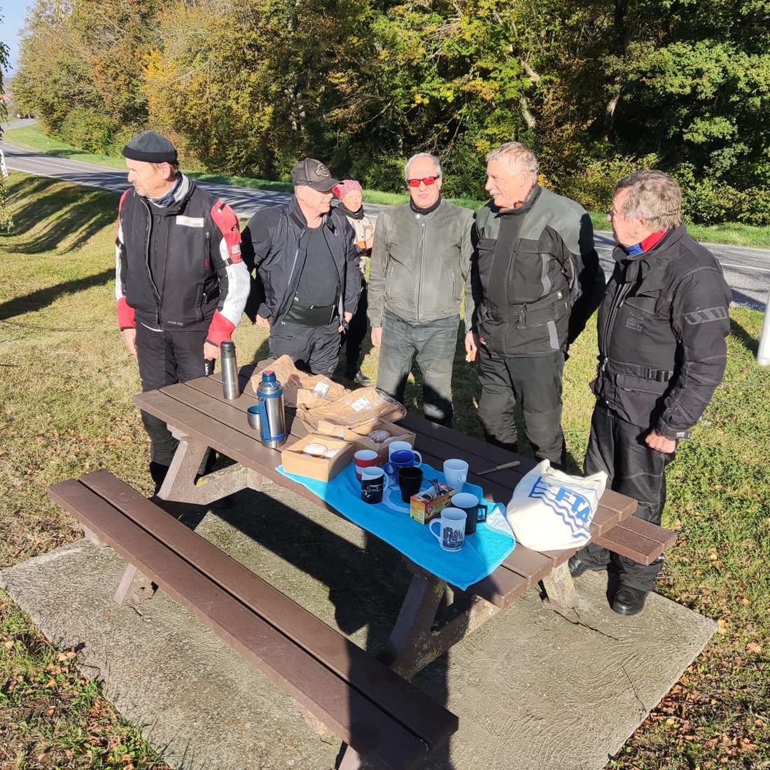 Wuselte hin und her und drumherum. Wollte er oder wollte er nicht? Der erste Versuch, konkret was zu bieten, schlug fehl. Zögerlich Gas geben – aber halt: Kaffee könnte jetzt guttun! Danach taten sich völlig neue Perspektiven auf und geschmeidig und gefühlvoll legte er sich in den Kurvenreichtum. Und dann – ja ja ja – oder vielleicht? Oder doch nicht? Kurz vor dem Ziel wurde er ausgebremst! Ließ sich ausbremsen! Tempo interruptus…. Also erst mal gudd gess. Zweiter Anlauf: Er zeigt, was in ihm und seiner Maschine steckt. Sicher! Gekonnt! Jürgen B. dreht auf!! Jürgen F. gab seiner Transalp so gut wie möglich die Sporen und Frank einen plus-Punkt.
