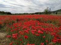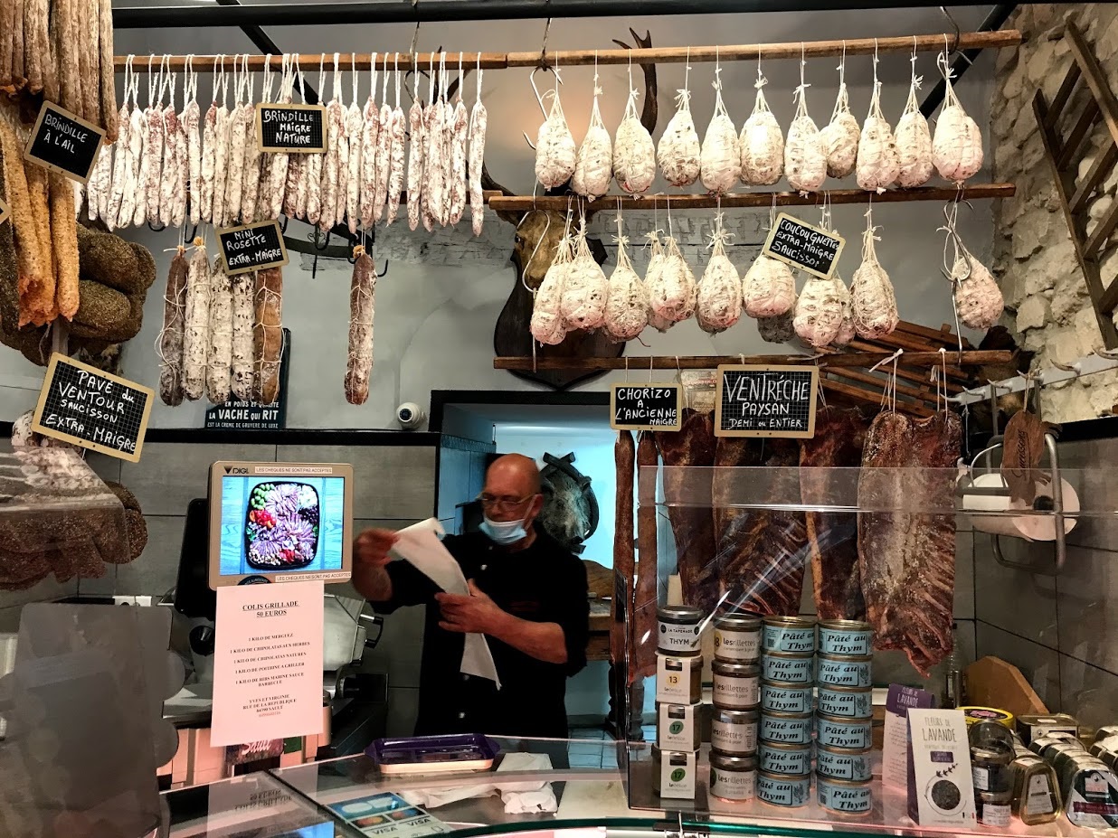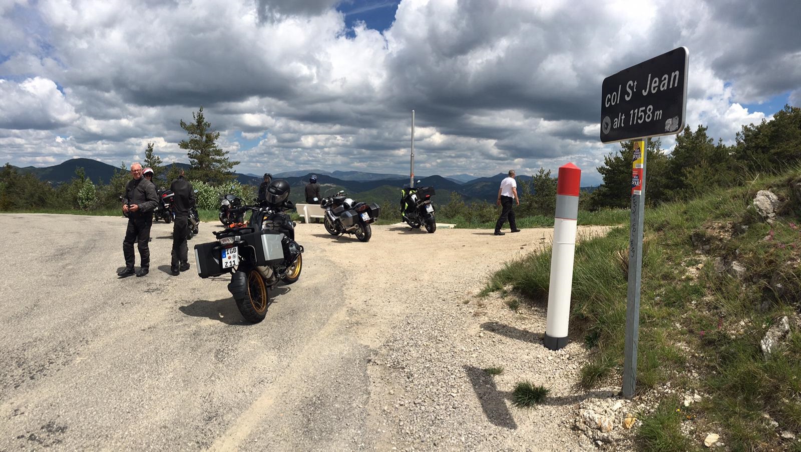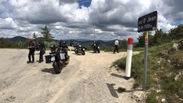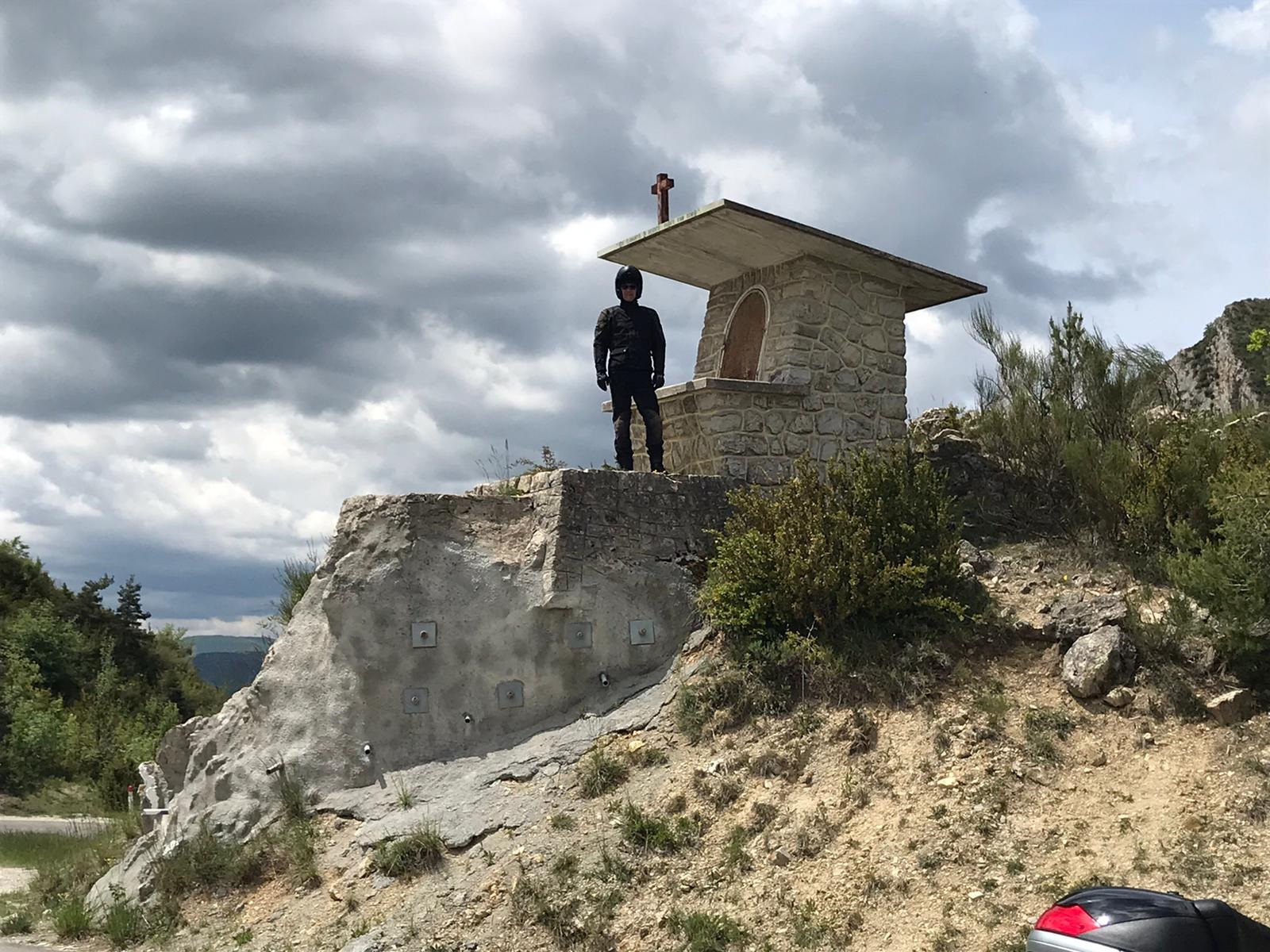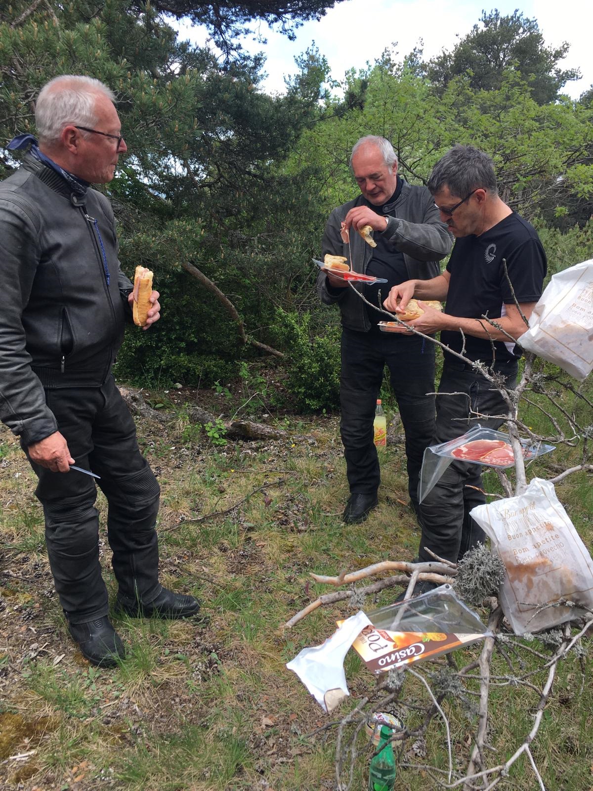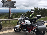 am nächsten Tag fuhren wir über den Gorges de Nesques , Sault die lange Auffahrt auf den Mont Ventoux deren letzten 6 Kilometer allerdings wegen Bauarbeiten gesperrt war. Wir mussten uns dann mit dem Zwischenziel Chalet Reynard begnügen. Von dort fuhren wir dann wieder über Sault, den Col de l’homme mort nach Montbrun , wo es leider sehr nach aufkommenden Gewitterregen aussah, sodass wir die Strecke änderten, abkürzten und einen anderen Weg zurück nach Sault fuhren, uns in einer prächtigen Charcuterie mit Nahrung versorgt, um dann unter Kastanien weitgehend trocken unser Piknick zu machen. Da das Wetter nicht besser wurde, entschlossen wir uns Richtung Heimat zu fahren, wurden zweimal etwas nass, aber hatten im großen Ganzen Glück gehabt. Nach knapp 200 Kilometer waren wir dann auch wieder in unserer Unterkunft.