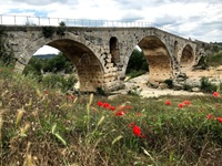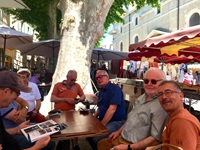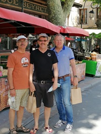 der fünfte Tag war bereits der letzte gemeinsame Tag. Wir entschlossen uns morgens in den wunderschönen Ort Isle sur la Sorgue, zu gehen, wo der kleine Donnerstagsmarkt stattfand, um den Markt zu besuchen, ein paar Mitbringsel zu kaufen. Im Anschluss daran fuhren dann Franz und Helmut mit dem Pkw und Hänger nach Hause. Wir machten noch eine kleinere Nachmittagstour unter anderem über den Col de murs nach Gordes und besuchten die älteste Brücke (Pont Julien) der Provence die 2300 Jahre alt ist und sich in der Nähe als gut besuchte Sehenswürdigkeit befindet. Am Abend mussten wir dann schon für die Rückreise packen.