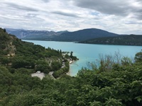 Die Mehrheit entschied nach dem Mittagessen auf einer herrlichen Terrasse jetzt um den See herumzufahren und noch denGorge du Verdon in Angriff zu nehmen. Als wir den See umfahren hatten, stellten wir fest, dass wegen dringender Bauarbeiten die komplette Zufahrt und Straße gesperrt war. So setzten wir traurig dass dieses einmalige Ereignis nicht befahren werden konnte unsere Fahrt fort, nunmehr in Richtung unserer Unterkunft in Isle sur la Sorgue, wobei der überwiegende Teil der Gruppe dann über Lourmarin eine andere Rückfahrtstrecke wählte. Nach insgesamt 292 Km war unsere Unterkunft dann wieder erreicht.