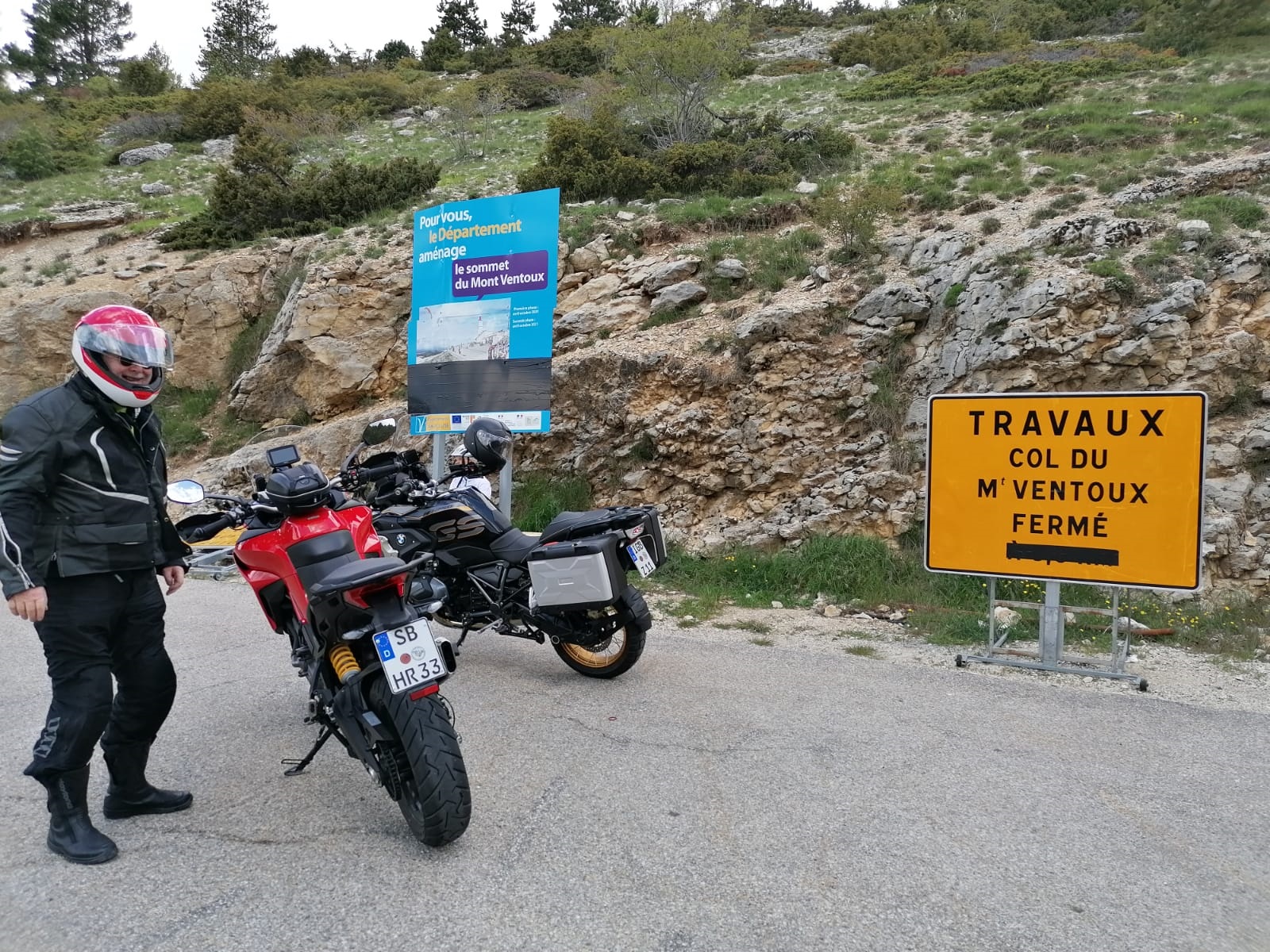 am vierten Tag entschlossen wir uns den Mont Ventoux von der Seite von Malaucene in Angriff zu nehmen, wozu wir dann einen längeren Anlauf über die dahinterliegenden Täler nahmen. Die Spitze war immer noch wegen Bauarbeiten gesperrt, sodass wir unsere sehr zügige Auffahrt in Serrain beenden mussten. Irgendwie hatten wir dann am Ende des Tages auch wieder knapp 200 Kilometer gefahren.