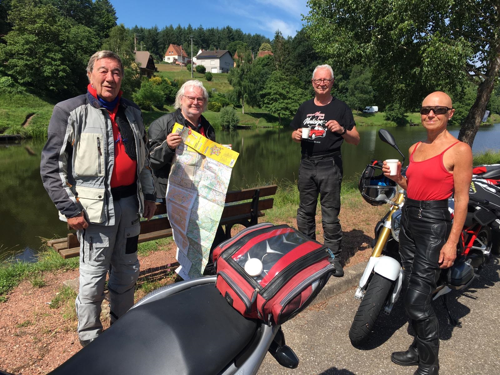 Der Bericht im Juli 2020 endete mit: „Danke Helmut für Wengelsbach.3 - Wengelsbach.4 kann kommen.“ Und Wengelsbach.4 ist gekommen – diesmal mit Marwin an der Spitze. Anderer Guide – andere Wege: Von Saarbrücken in das krumme Elsass unter anderem Bärental. Essen im „Au Wasigenstein“ gemütlich sur terrasse. Ohne „Mistkratzeln“ geht es kaum. Rückfahrt über die Pfalz Ludwigswinkel, Eppenbrunn, Vinningen und den Bliesgau . Gesamt Kilometer 218. Wie immer schönes Wetter und gut durchdachte Tour von Marwin. Auch der Rückweg verlief gut geplant und nicht aus Zeitmangel in Hektik über die Autobahn…. Danke Marwin für Wengelsbach .4 – Wengelsbach.5 in 2022? Anyone…?
